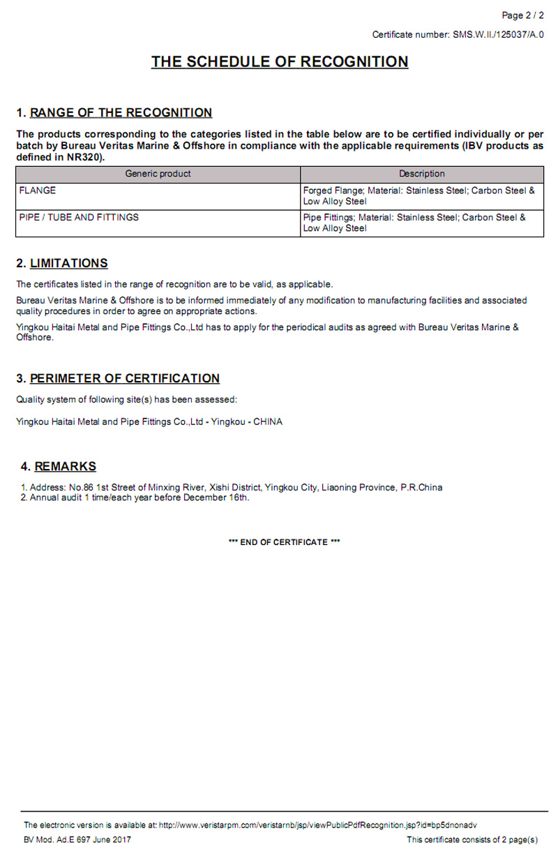 BV船級社證書